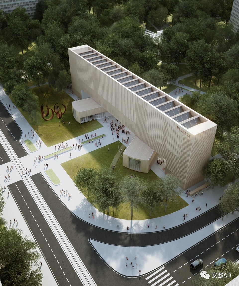 Penda推崇建建该当是“可变化的”,正在Penda的包豪斯博物馆设想方案中,展馆设有两个可矫捷扭转的实体布局,令展馆既可封锁也能打开。建建取周边的城市公园相辅相成,当有大型时,建建本身成为人勾当的布景,通过人和建建的互动,让建建和城市发生更为亲近的联系。