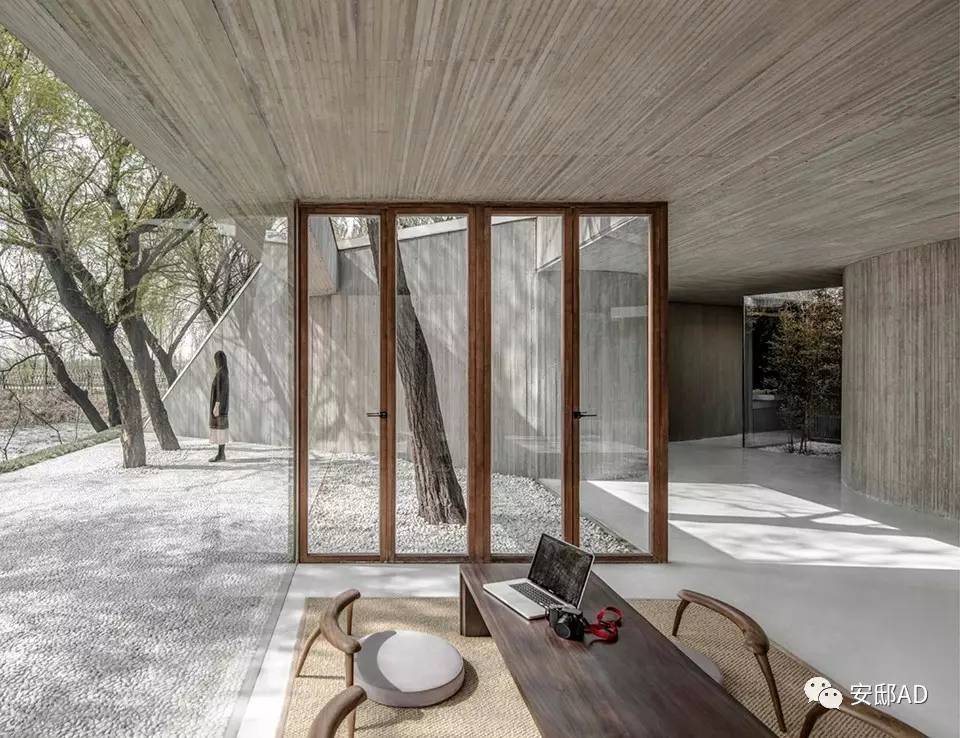 混凝土浇建而成的水岸佛堂一半现于土丘之下,室内空间却很是宽阔,动线合适人正在空间中的安步体验,具有流动性,让吃茶品茗、起居、参佛的行为融汇正在一种叙事言语中。正在建制时,混凝土模版由松木条竖向拼接而成,这个由于担忧施工质量不而采纳的小行动,却带来了意想不到的出格肌理。